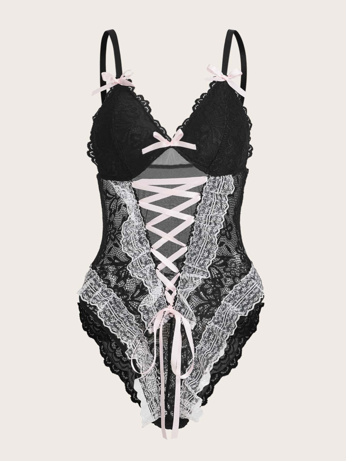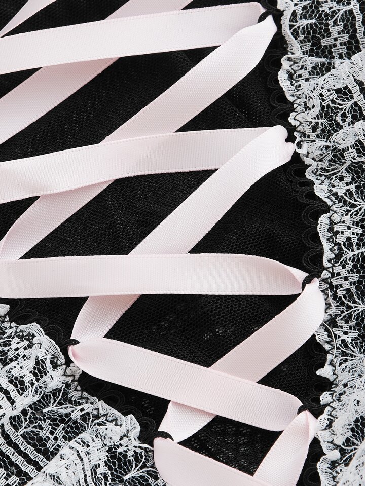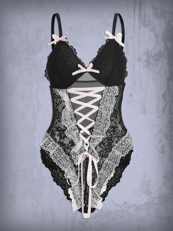 Goth Teddy Body mit Band vorne, Spitze