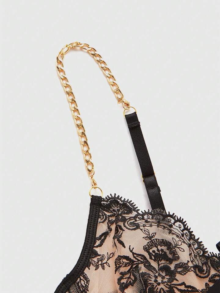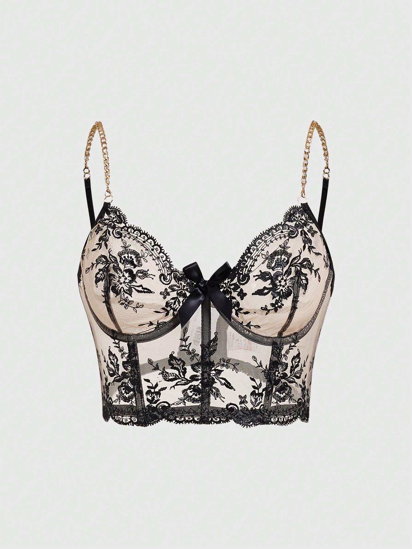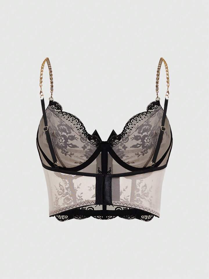 Damen-korsett Aus Gothic-spitze, Blume Und Metallkette Mit Stahlringen, Sexy Oberteil (einzeln)