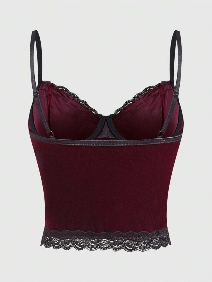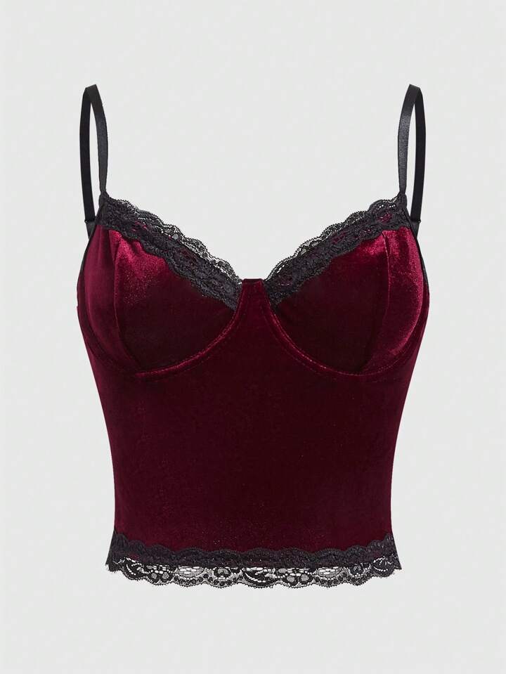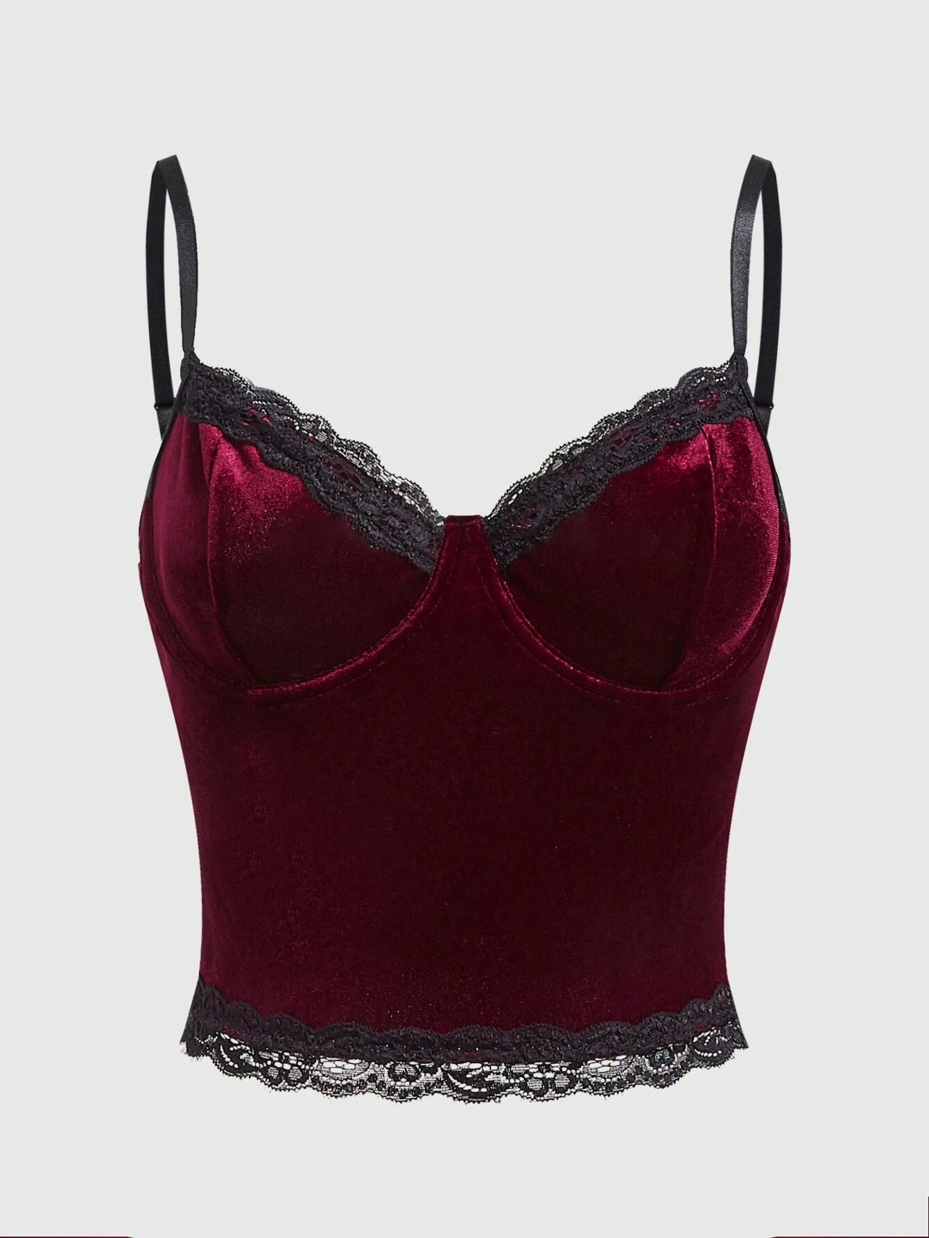 Goth Weinrotes Damen-camitop Aus Samt Und Spitze Mit Spleißeffekt