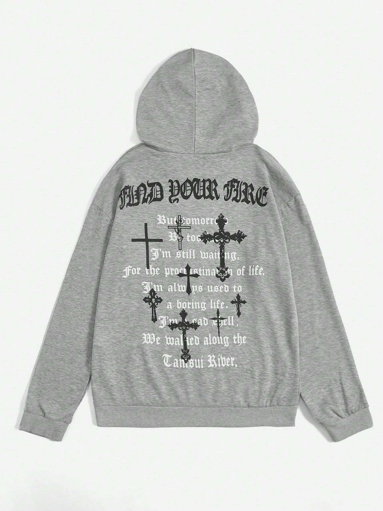 Goth Herren Kapuzenpullover mit Buchstaben- & Kreuz Print