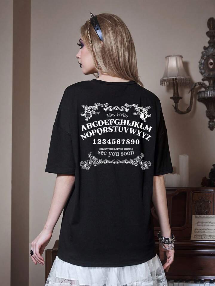 Goth Übergroßes T-Shirt mit Buchstaben Grafik,