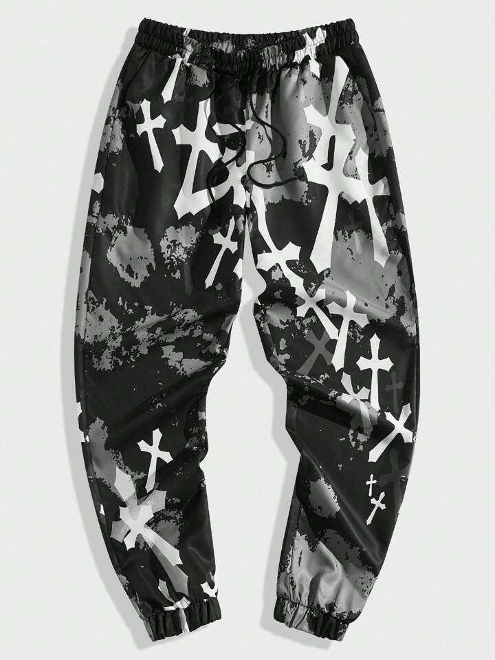 Goth Herren Jogginghose Mit Kreuzmuster Und Kordelzug