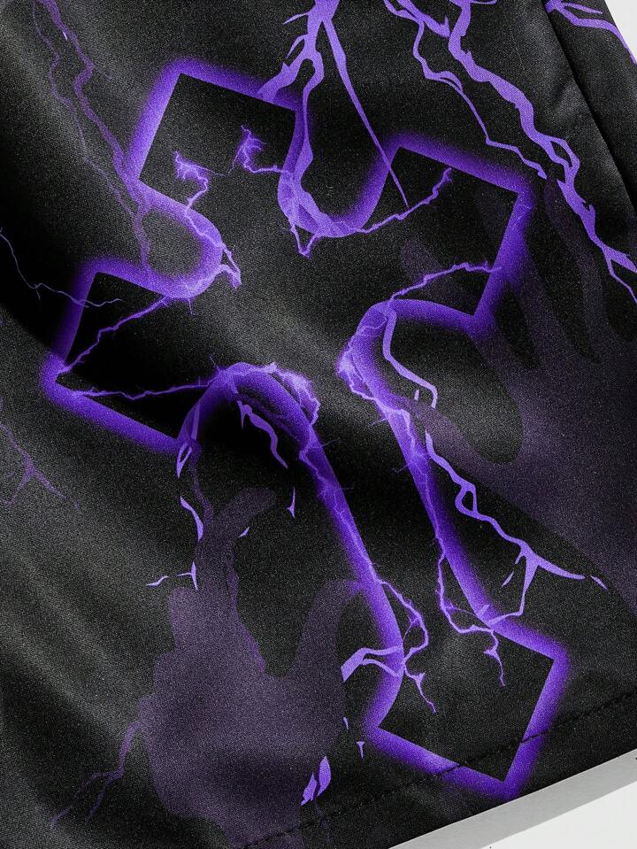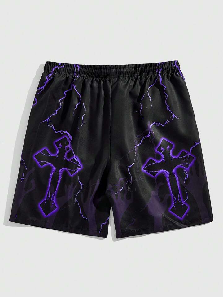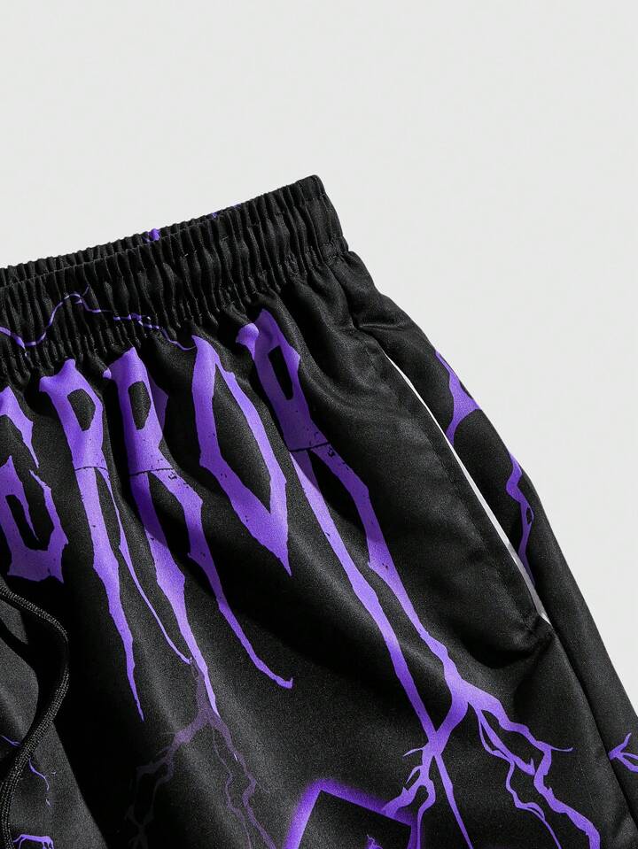 Goth Herren Sommer Lässig Basketball Shorts mit Kordelzug und digitalem Muster, Schule