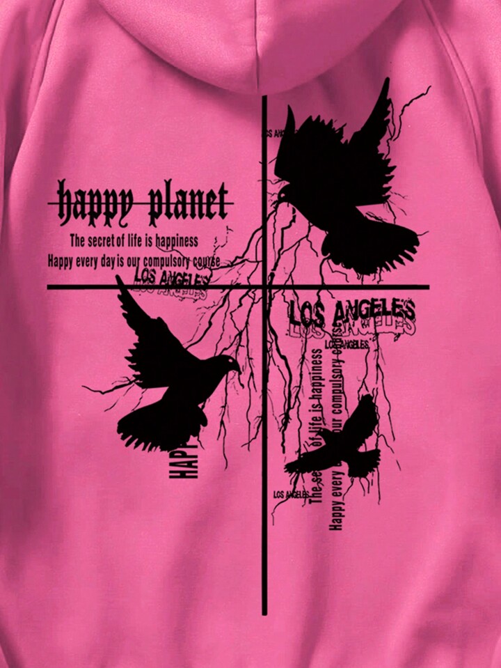 Goth Herren Adler- und Slogan-bedruckter Raglan-Ärmel Thermofutter Hoodie