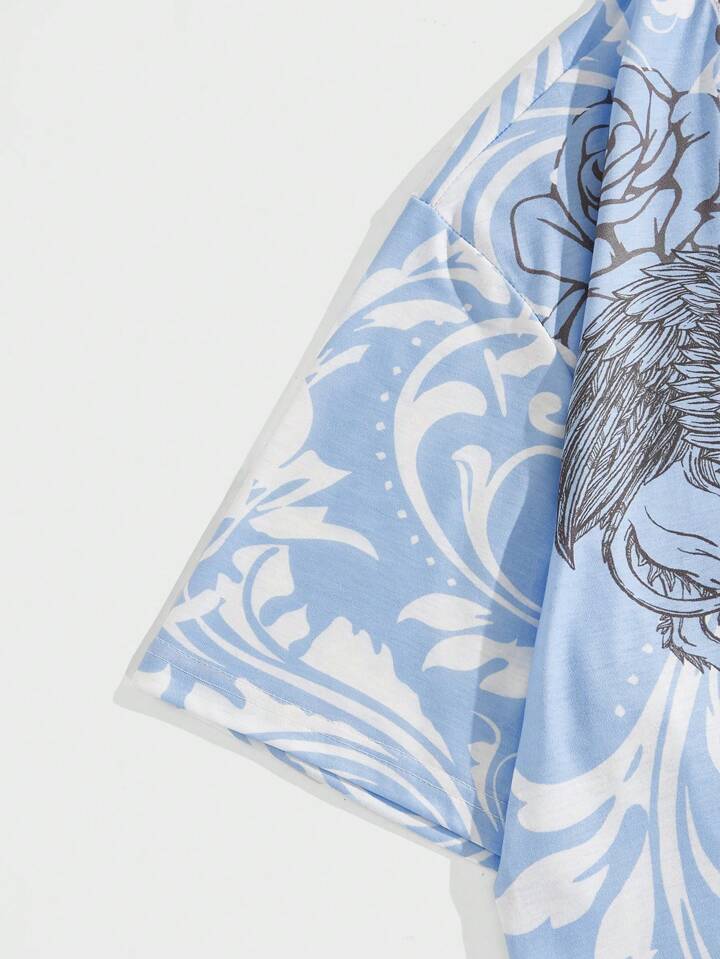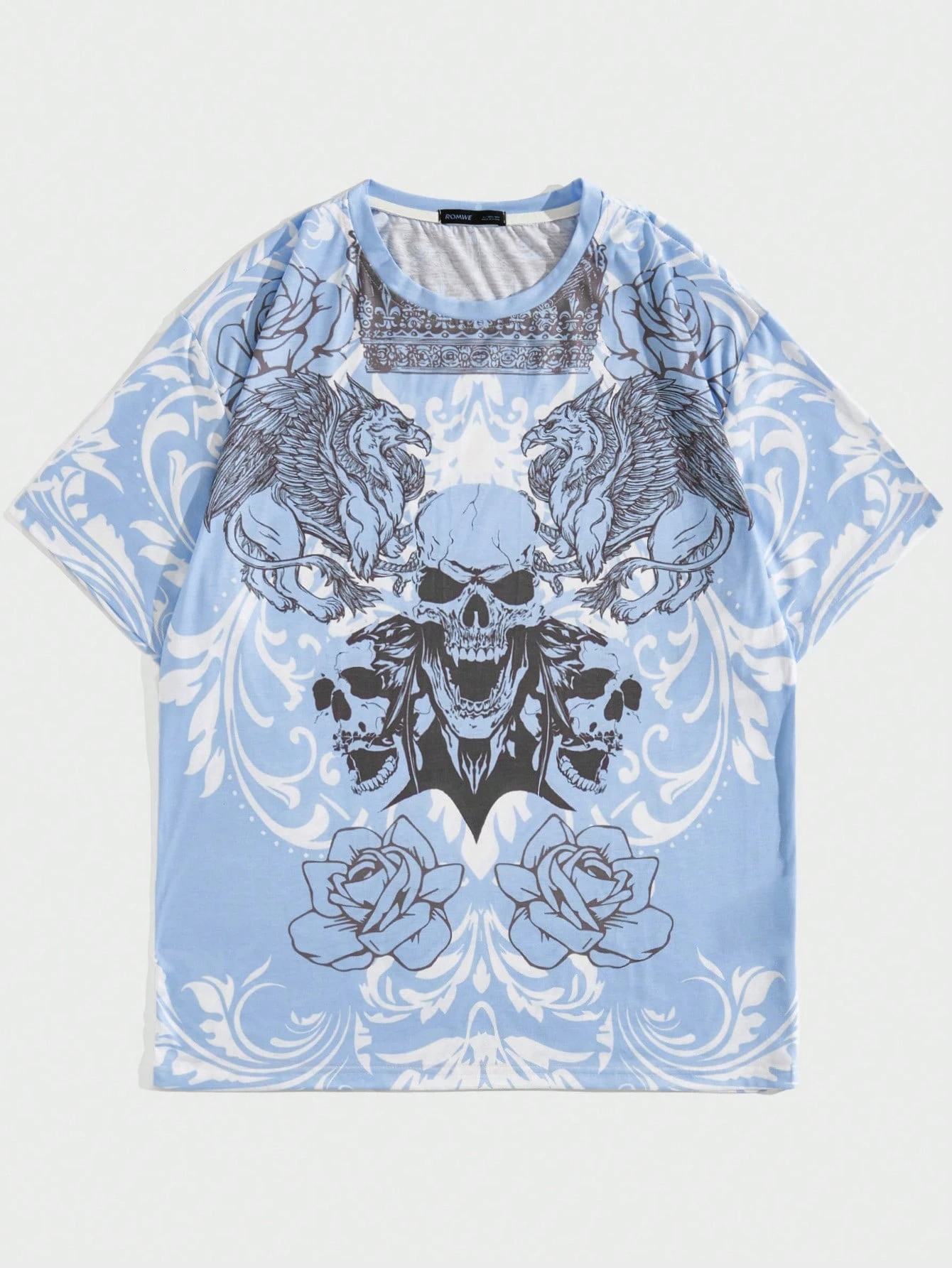 Goth Herren T-Shirt mit Blumen & Totenkopf Muster