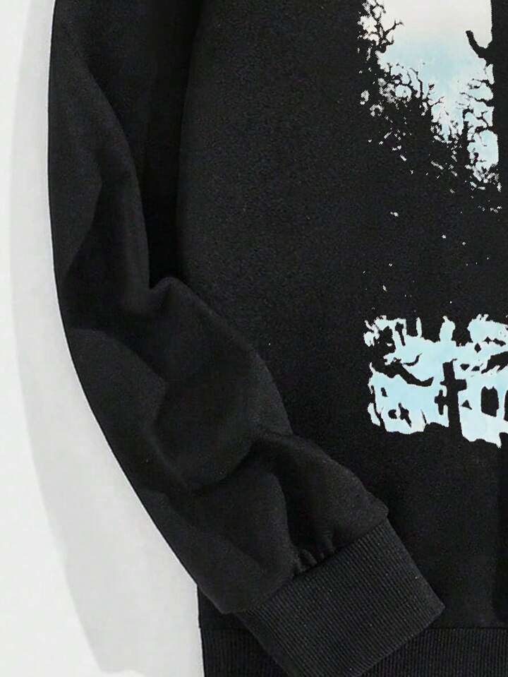 Goth Männer Hoodie mit Buchstaben Grafik, Tunnelzug,