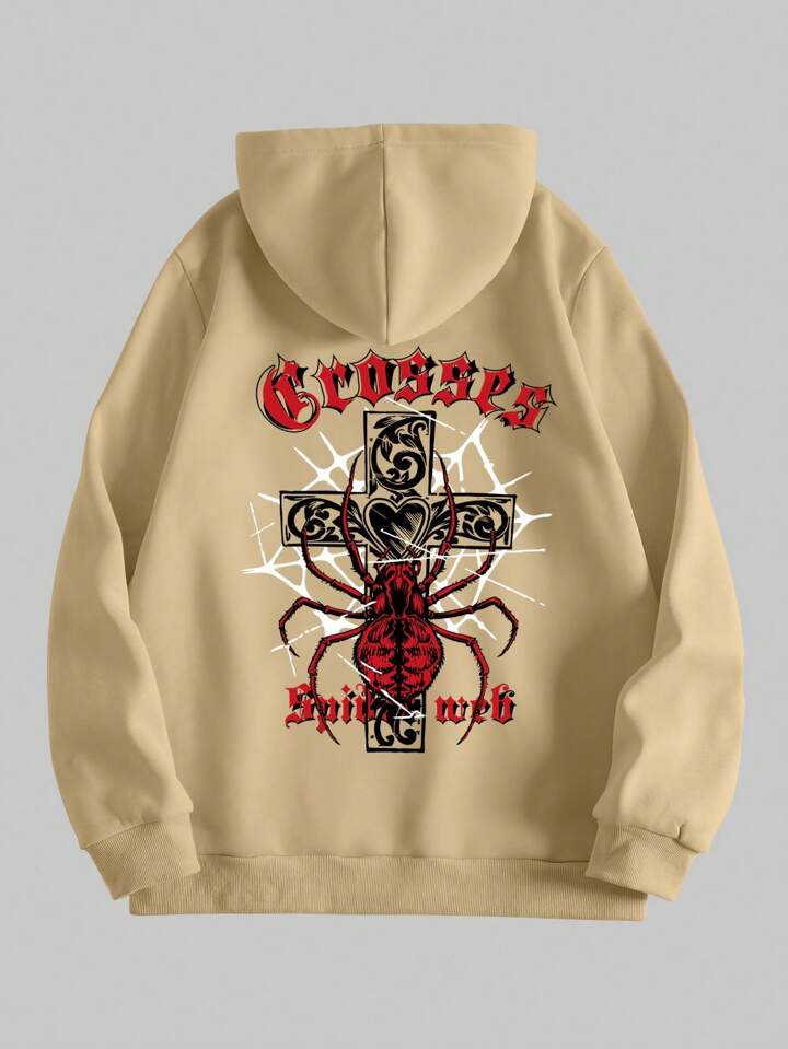 Goth Herren Buchstaben & Herz Druck Thermal-kapuzenpulli Mit Reißverschluss
