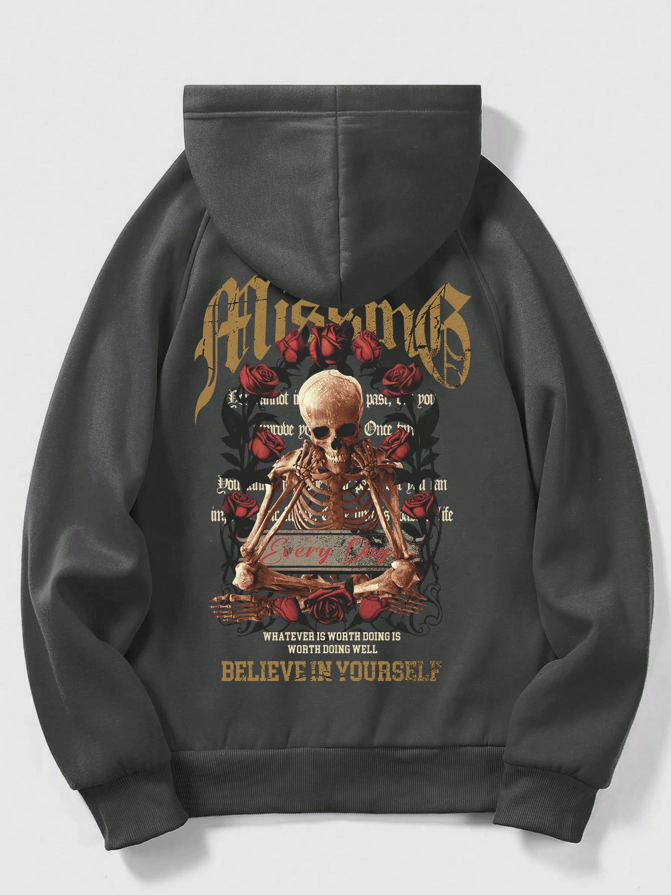 Goth Herren-thermo-hoodie Mit Skelett- Und Slogan-grafik, Raglanärmeln Und Kordelzug