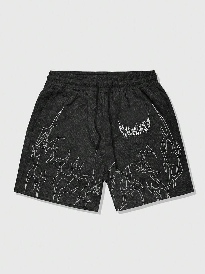 Goth Herren Lässig Bedrucktes Rundhals T-Shirt & Shorts Set