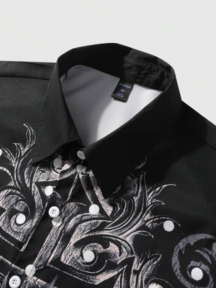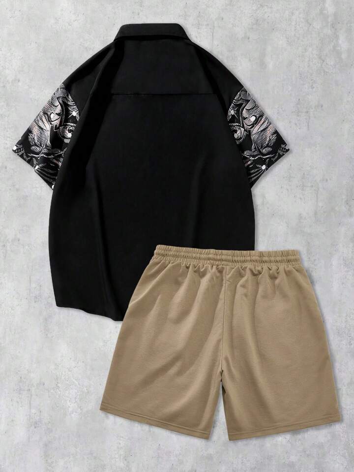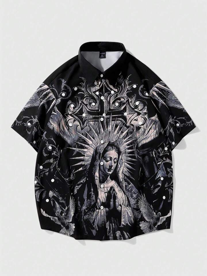 Goth Herren Lässig Set aus Hemd mit Motiv der Heiligen Maria und Kreuz sowie Shorts, Sommer