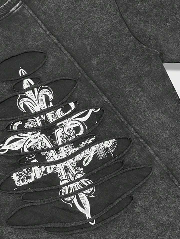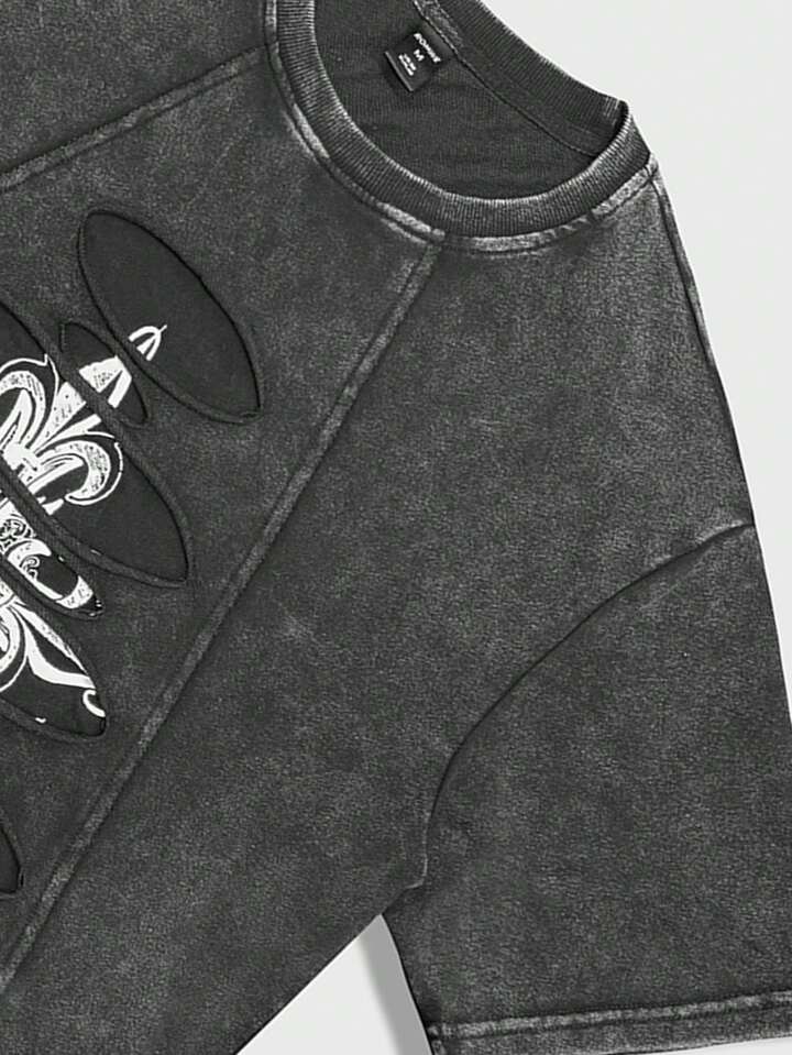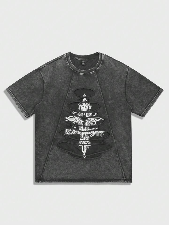 Goth Herren Barock Muster Rundhals Kurzarm Lässig T-Shirt