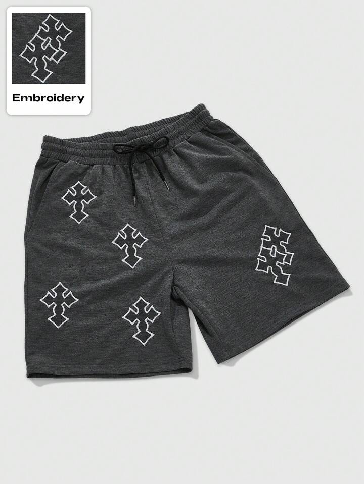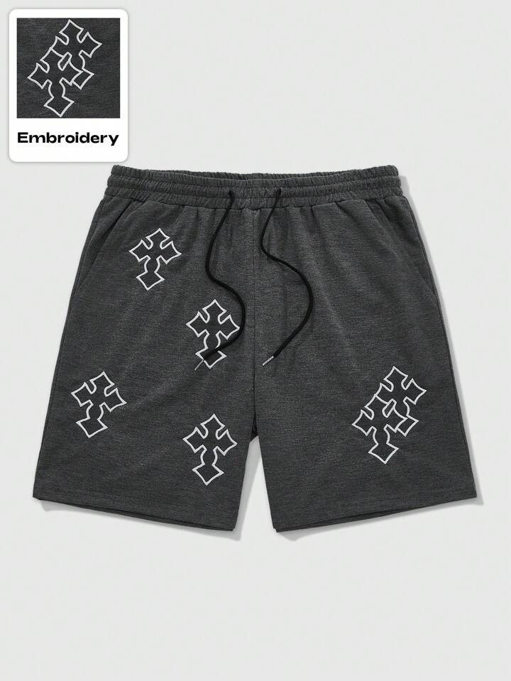 Goth Herren Lässig Athletic Shorts mit Kreuz-Stickerei, Sommer