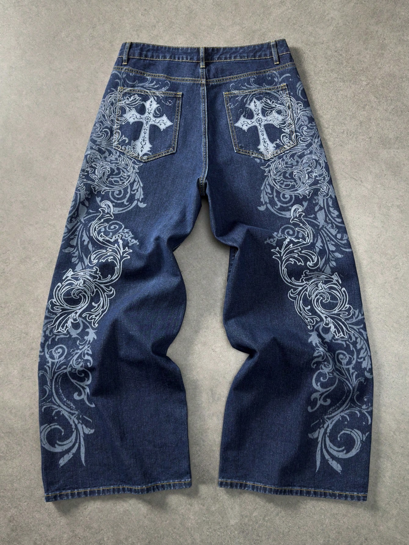 Goth Herren Kreuz Muster Loose Fit Weite Bein Lässig Jeans
