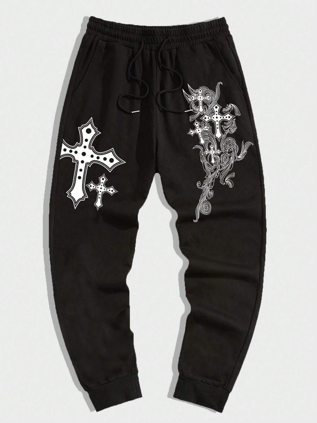 Goth Herren Sweatpants Mit Zugband In Der Taille Und Kreuz Druck