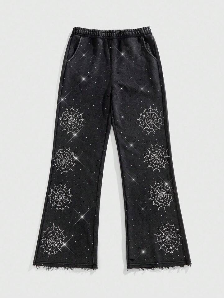 Goth Herren Mode Strass Spinnennetz Weite Bein Jogginghose, Halloween