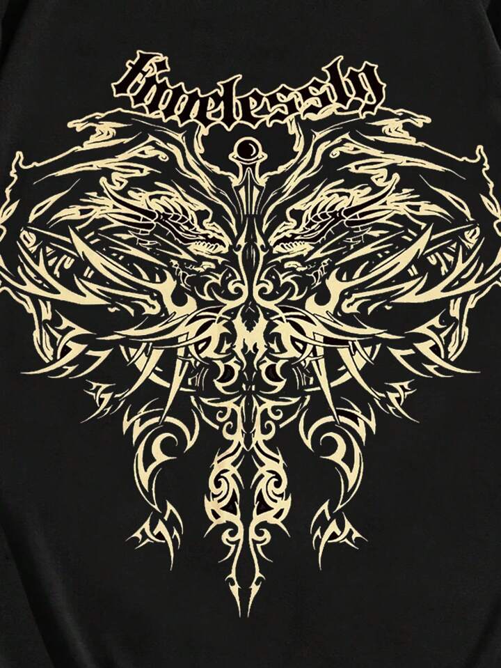 Goth Herren T-Shirt mit Buchstaben Muster, Rundhalsausschnitt, Kurzarm, Lässig