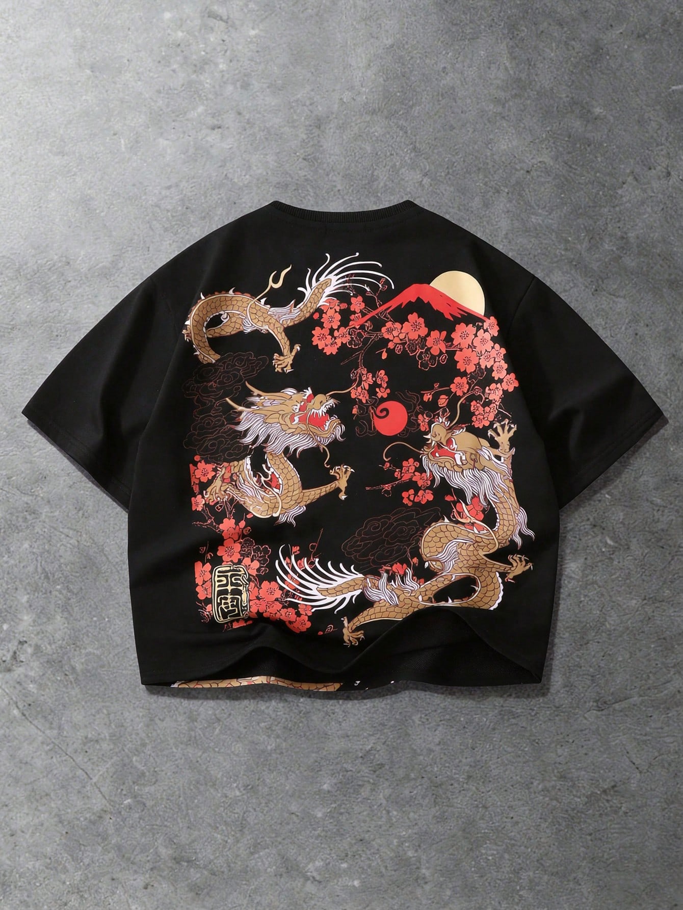 Goth Herren lässiges T-Shirt , Drop-Shoulder, Muster, Retro Streetstyle