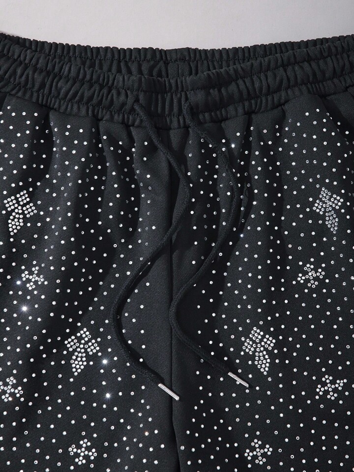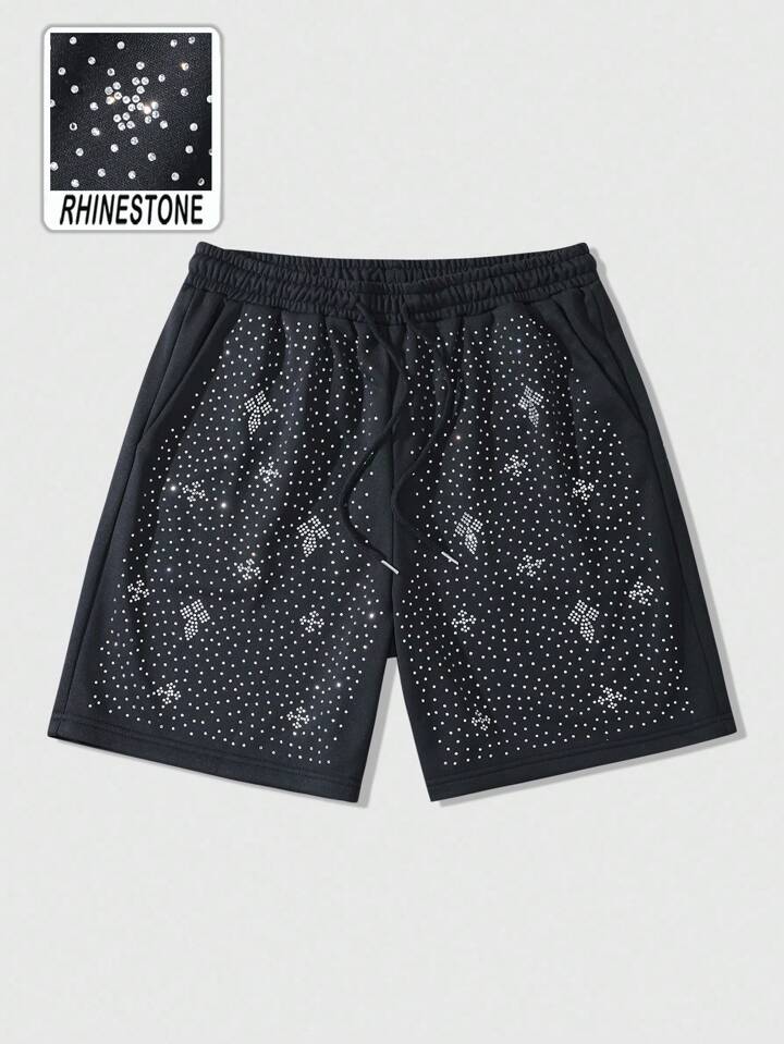 Goth Herren weit geschnittene Shorts mit funkelnden Strass-Kreuz-Muster