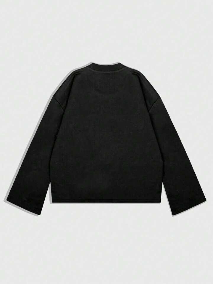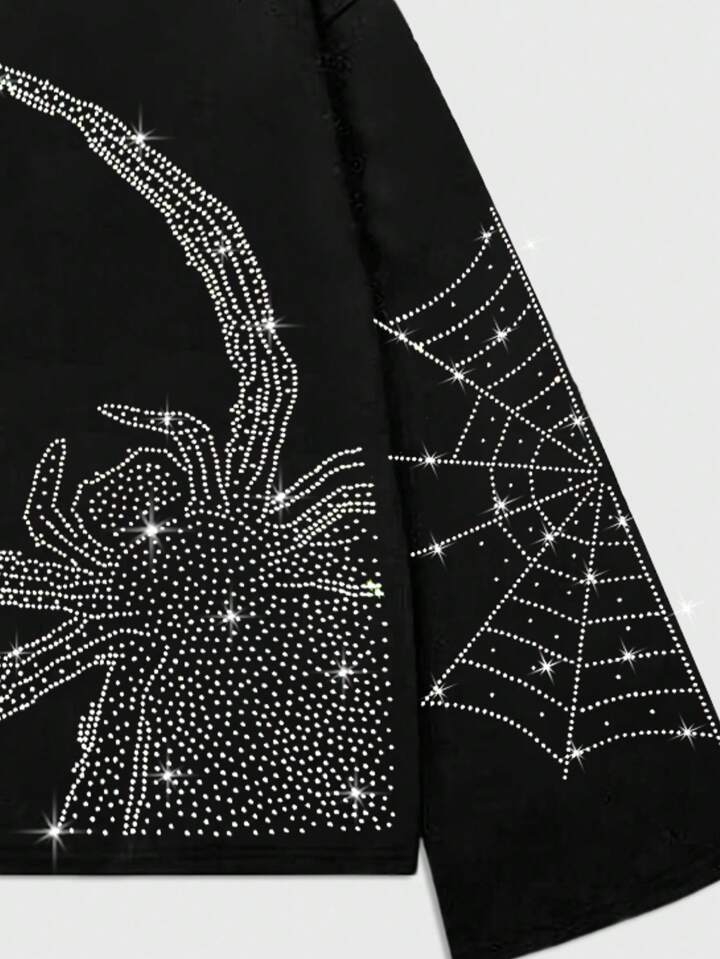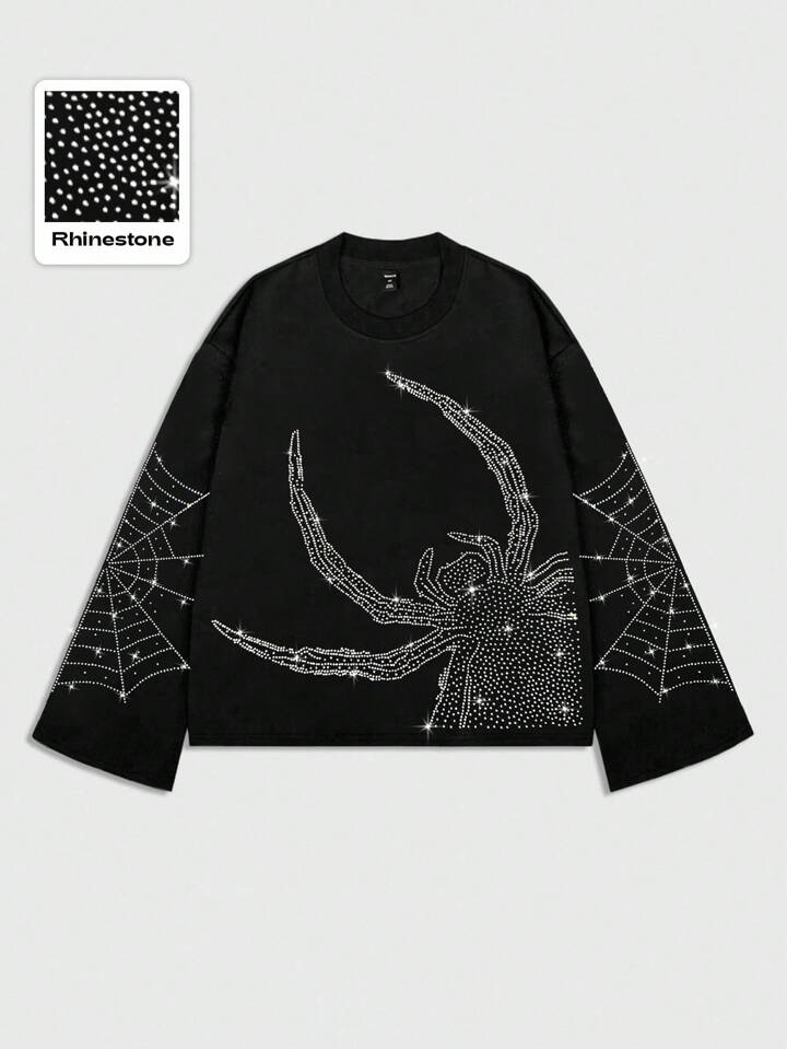 Goth Herren Langarm T-Shirt mit funkelndem Diamantmuster, locker geschnittener Crop-Fit