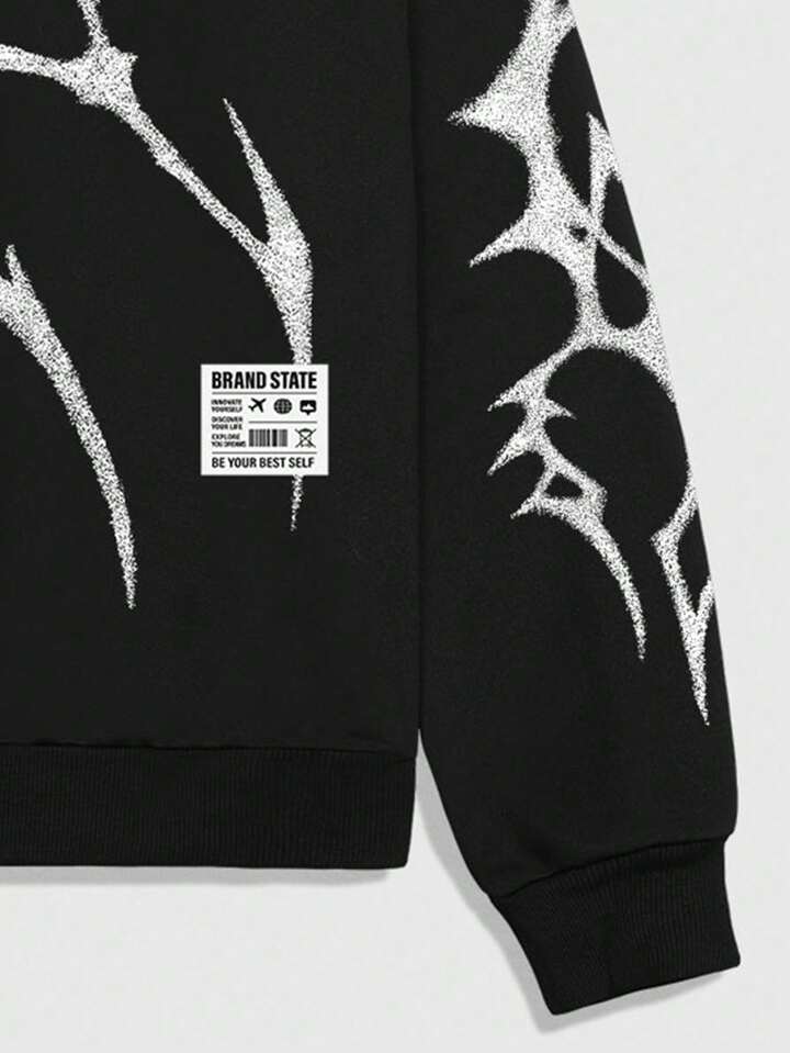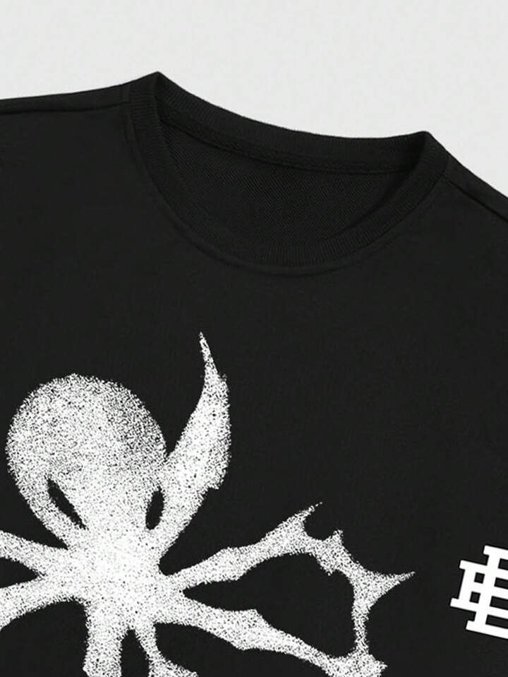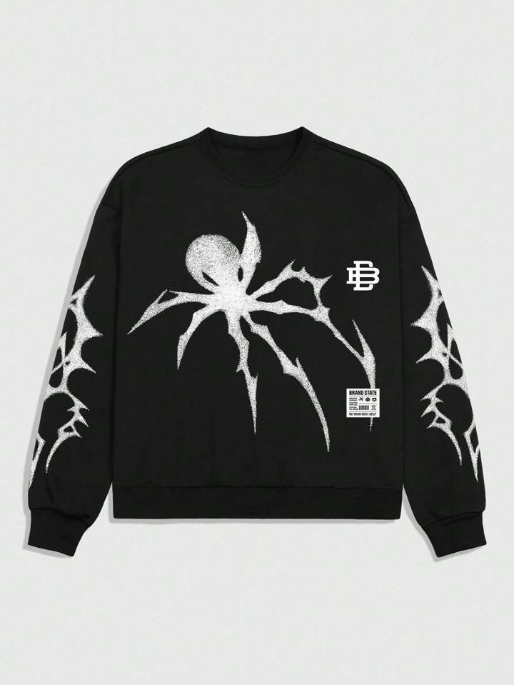 Goth Herren Spinne Muster Rundhals Langarm Pullover Sweatshirt, Halloween