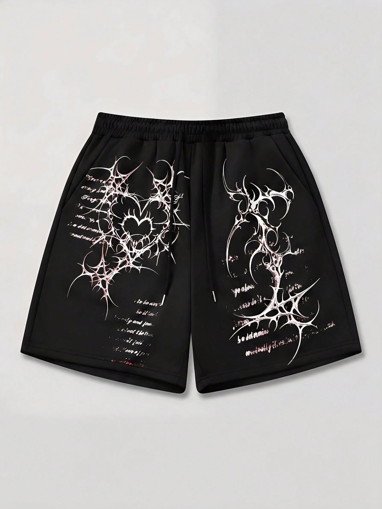Goth Herren Sommer Casual Sport Shorts mit Buchstaben- und Herzprint, Tunnelzug Taille