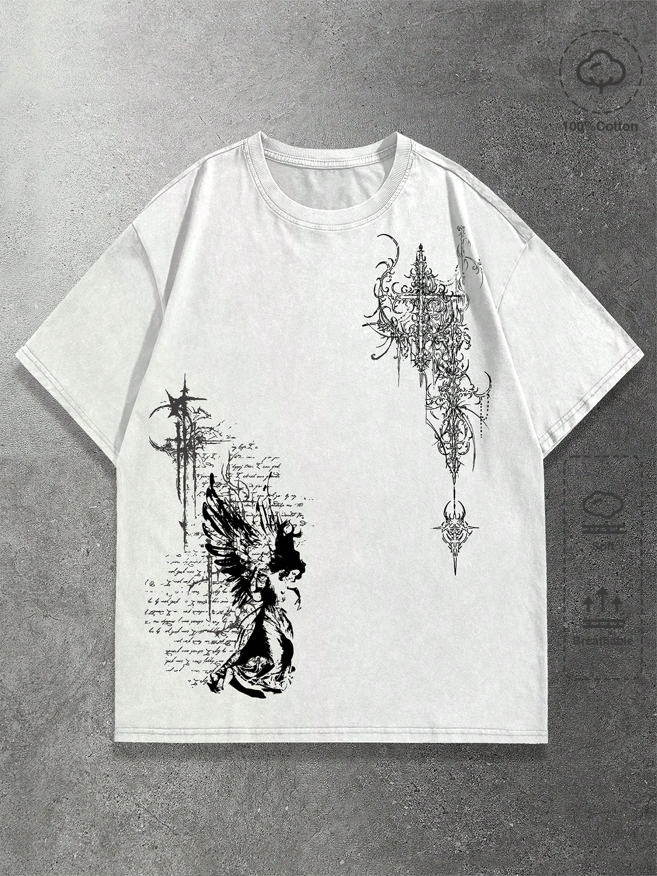 Goth Herren Lässig T-Shirt mit Flügel Muster, Rundhalsausschnitt, Kurzarm