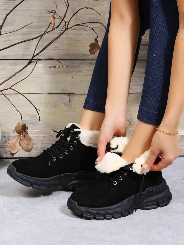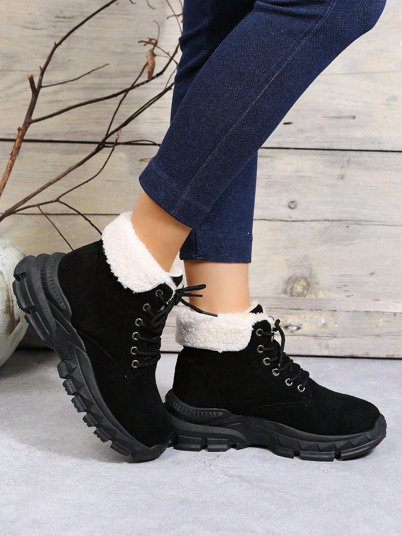 Goth Neue Ankunft Kurzstiefel für Herbst und Winter, schwarze thermisch gefütterte Schuhe zum Warmhalten, vielseitig für Frauen