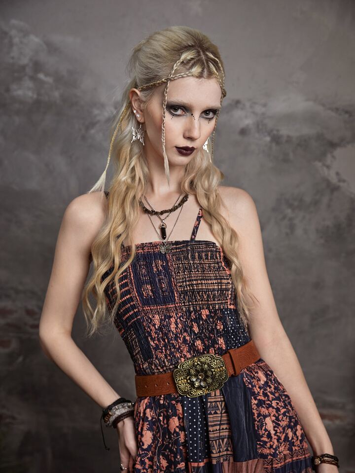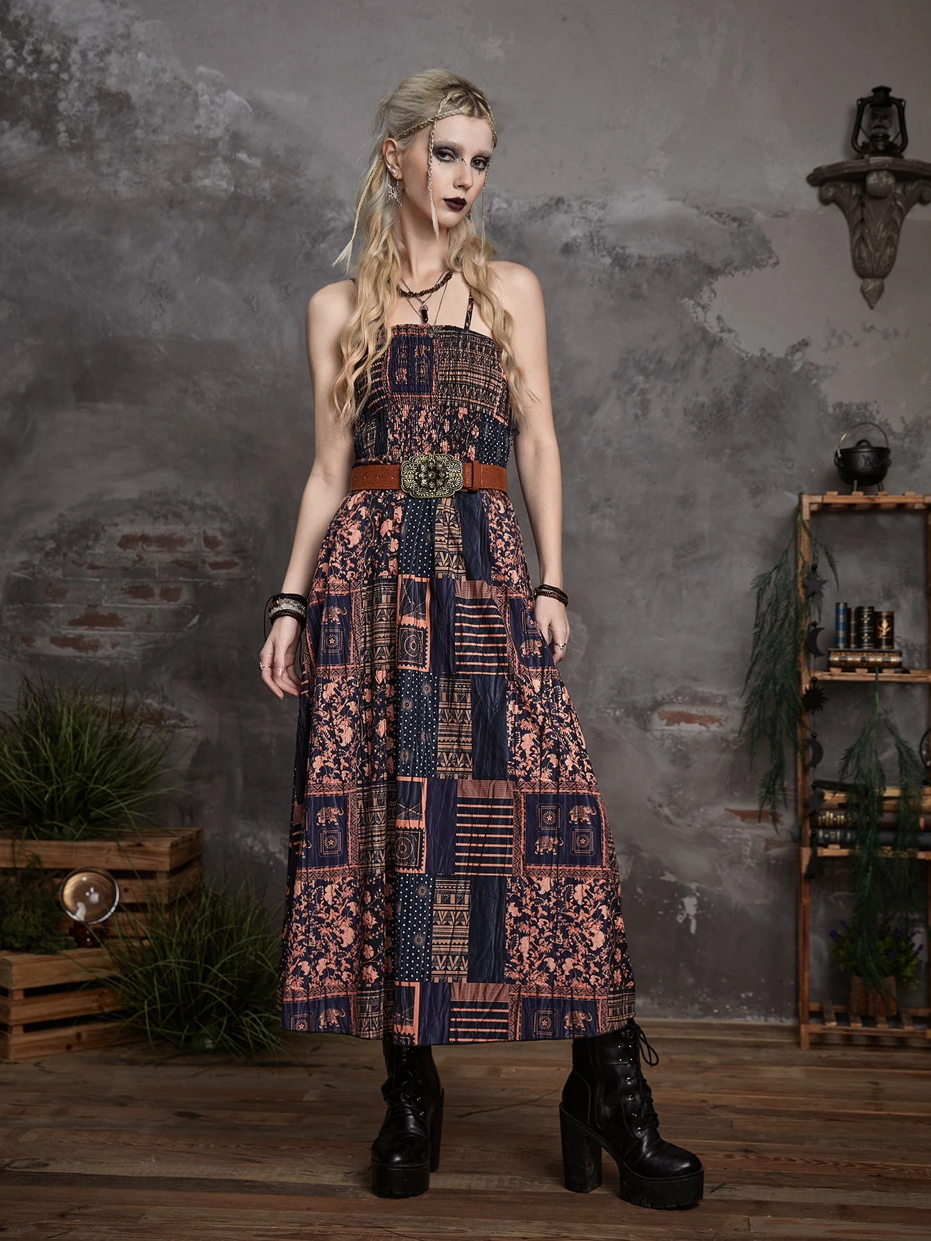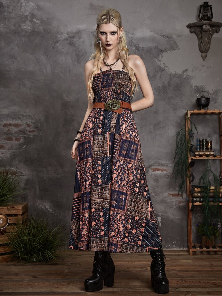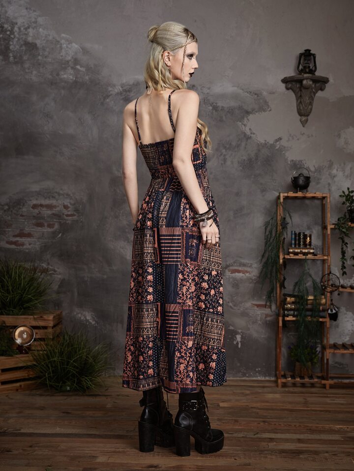 Goth Cami Kleid mit Patchwork Muster, ohne Gürtel