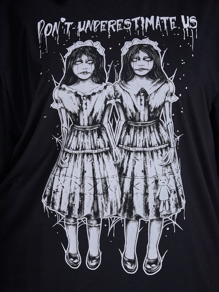 Goth Drop Shoulder T-Shirt mit Figur Grafik