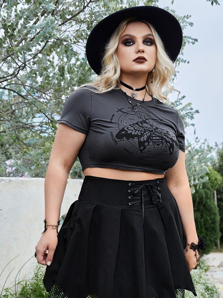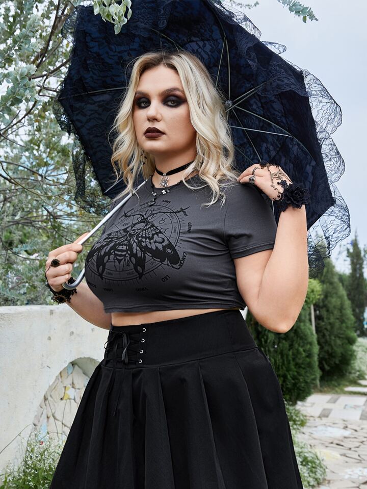 Goth Crop T-Shirt mit Motte Grafik,