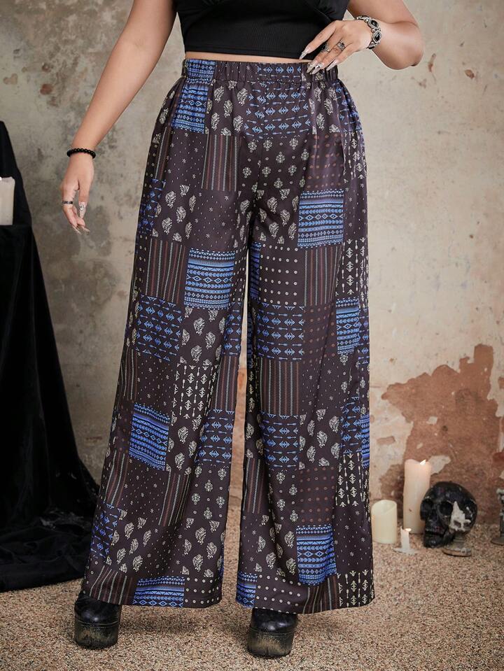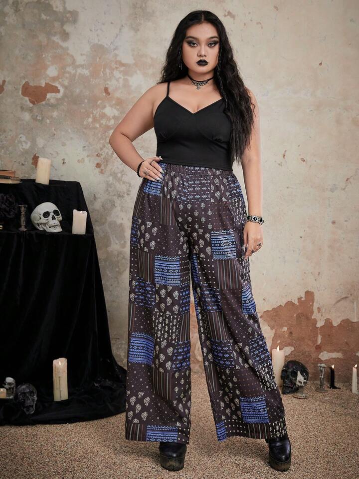 Goth Hose mit weiten Beinen, Patchwork Muster,