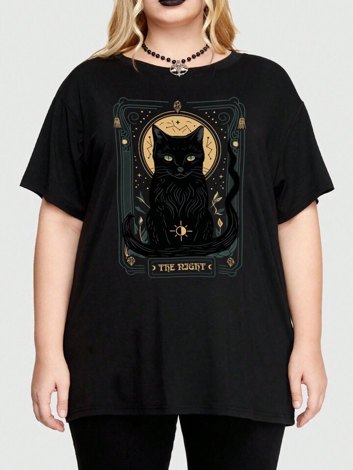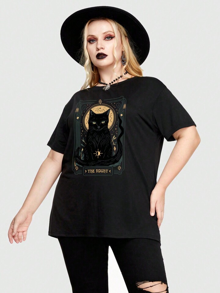 Goth Große Größen T-Shirt mit Katzen Grafik und Raglanärmeln "DIE RICHTIGE"