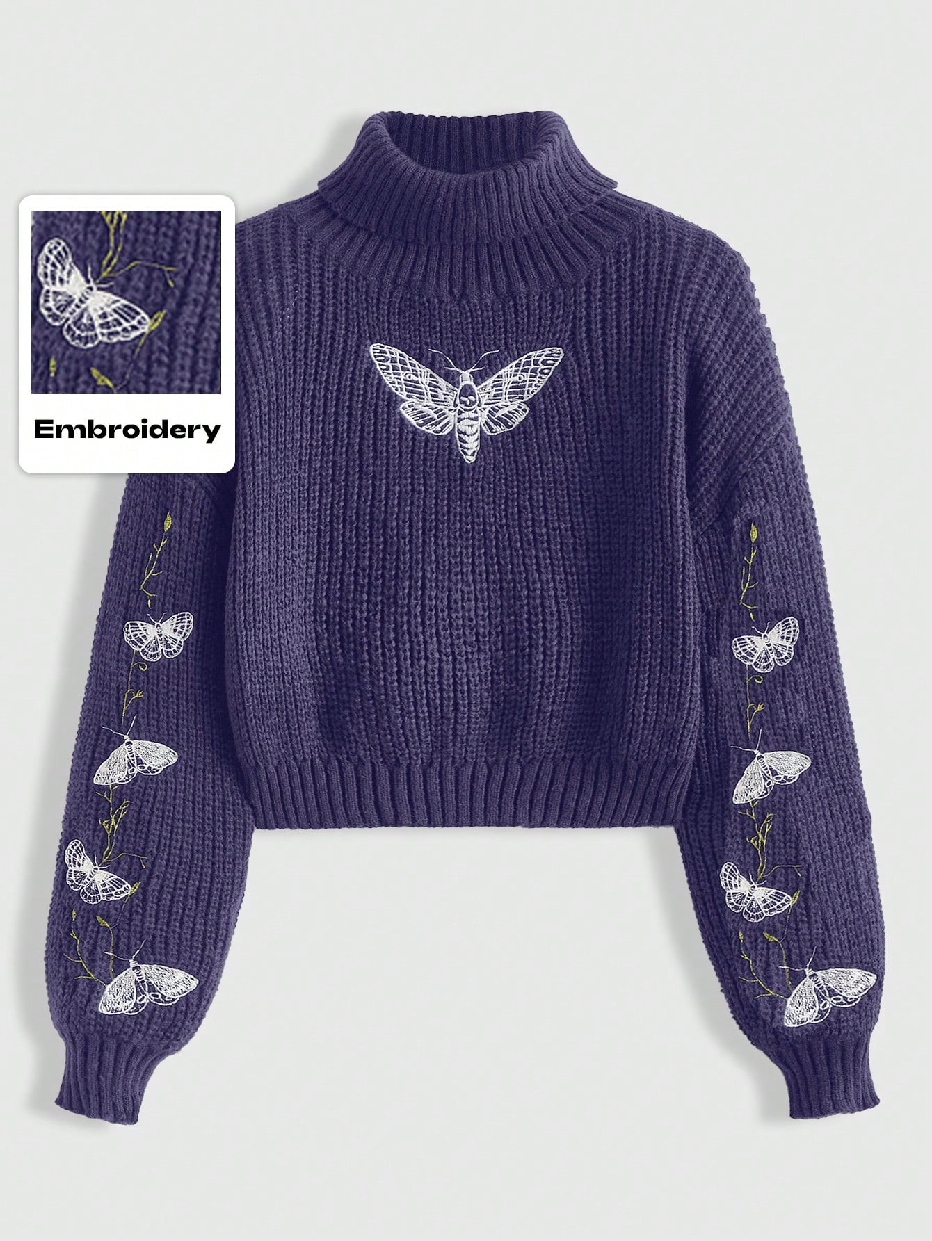 Goth Pullover Sweater in Große Größen mit Motten- und Schmetterlings-Ranken-Stickerei, Vintage lila bestickter Weihnachtspullover, Pullover Sweater für Frauen in Große Größen
