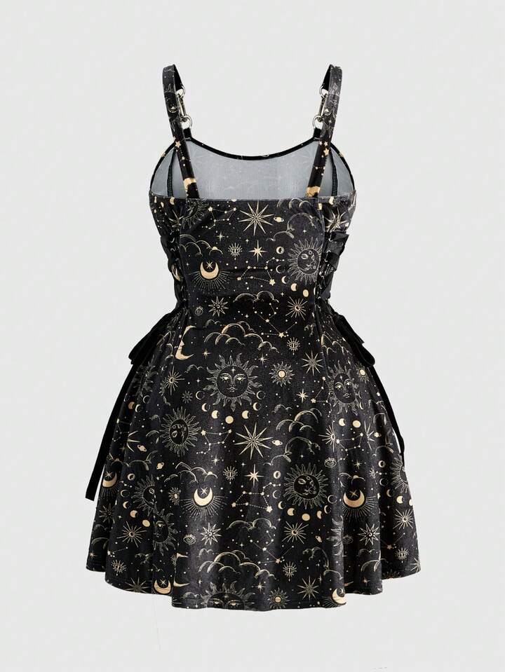 Goth Große Größen Punk Sun & Moon Samtdruck Schnürdesign Bodycon Kleid für Damen