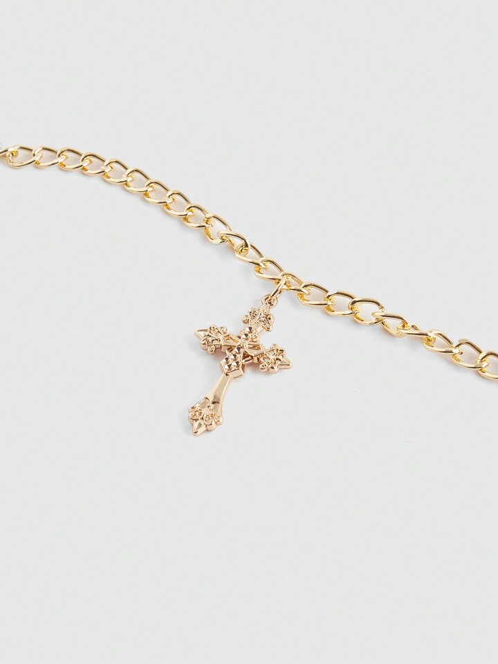 Goth Oversize Schulter Spitze Patchwork Glockenärmel Top mit Kreuz Anhänger Dekoration