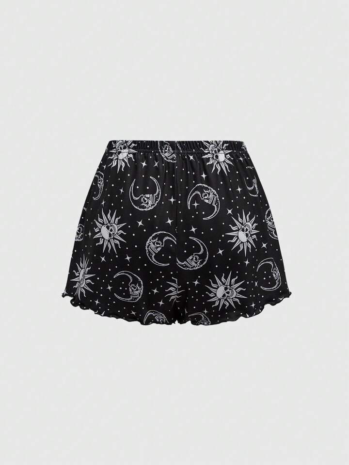 Goth Punk Skelett, Sonne & Mond Muster Camisole & Shorts Pyjama Set