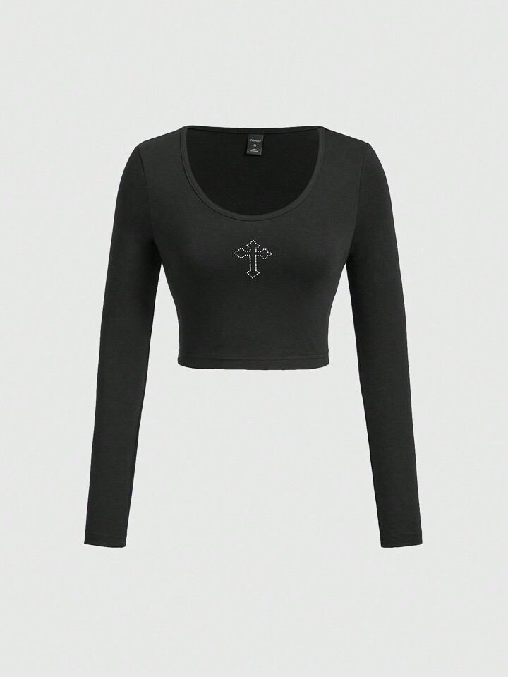 Goth Crop T-Shirt mit Strass Kreuzmuster