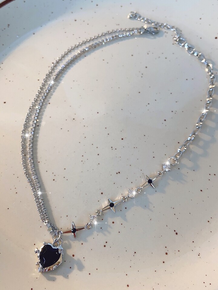Goth Halskette mit Strass Dekor, Herz Anhänger