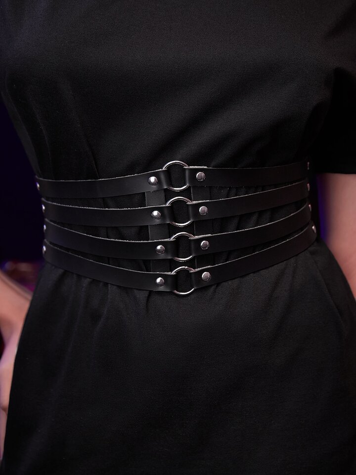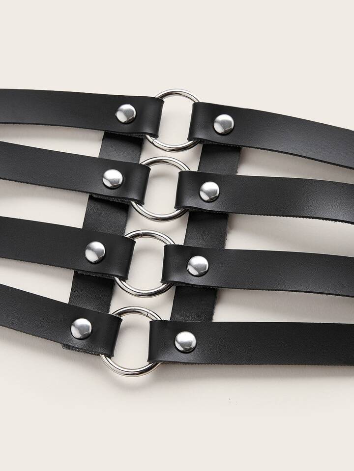 Goth Elastischer Gürtel mit Ring & Nieten Dekor