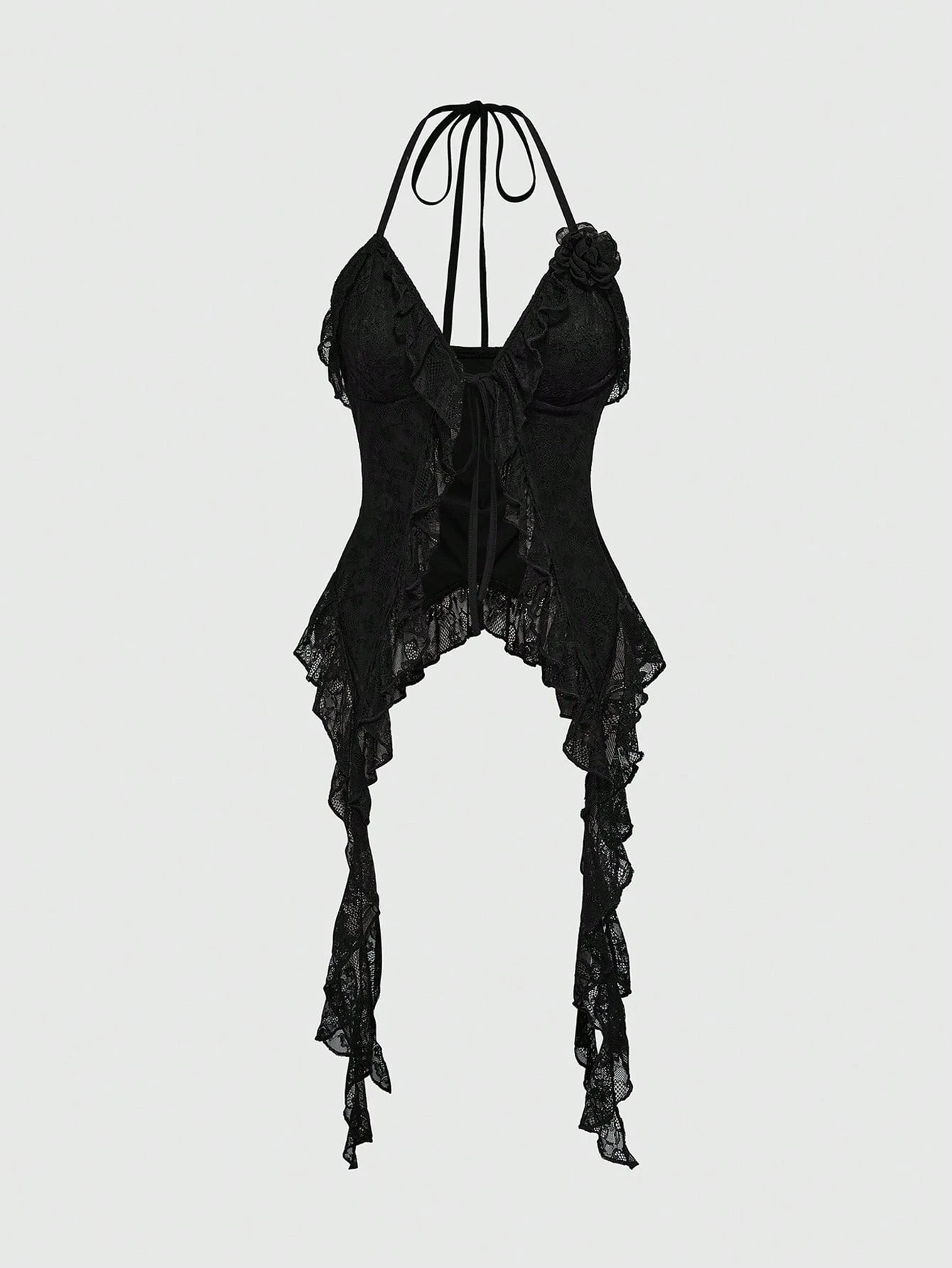 Goth Romantisches Urlaubs-Camisole mit asymmetrischem Spitzensaum