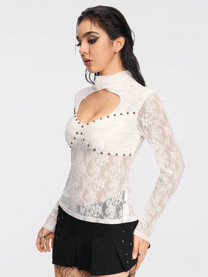Goth Sexy minimalistischer Sexy-Stil weiche Spitze, durchsichtiges Damen-T-Shirt mit offenem Rücken