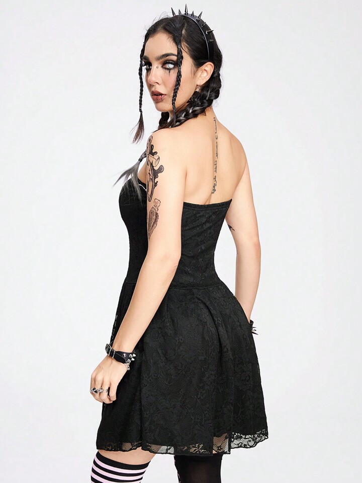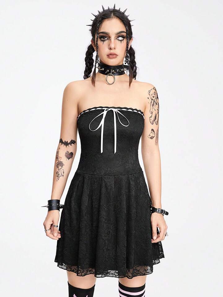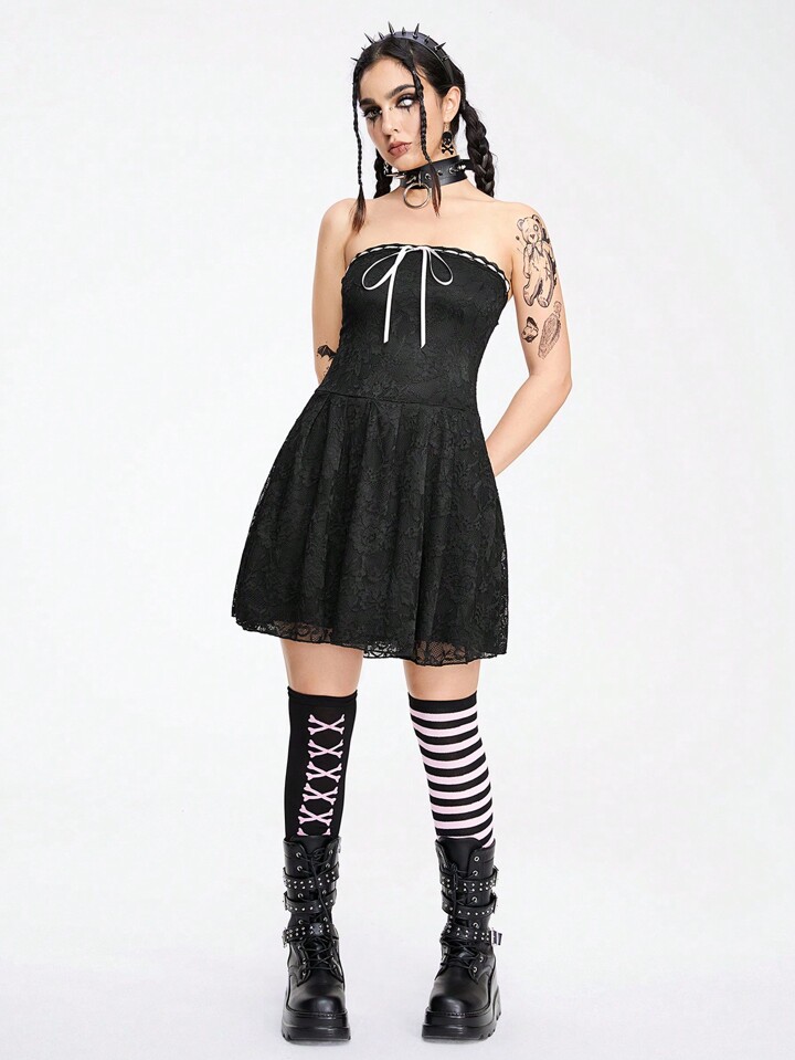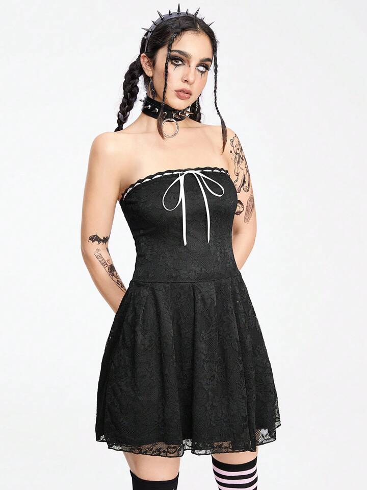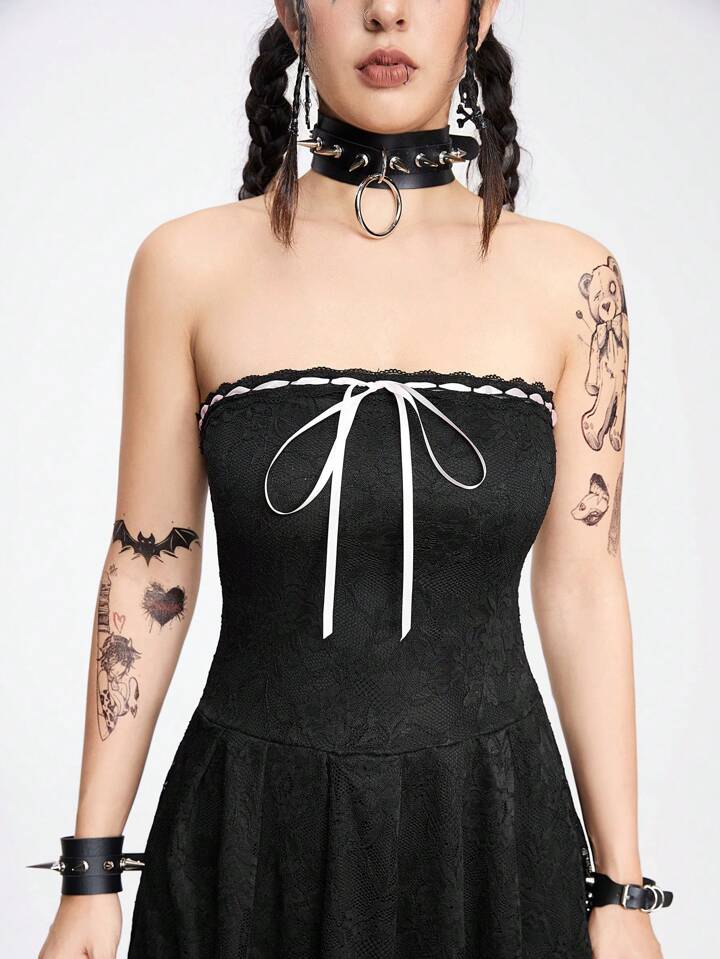Goth Sexy Pure Temptation Party Spitze Schleife Gürtel A-linie Kleid Für Damen