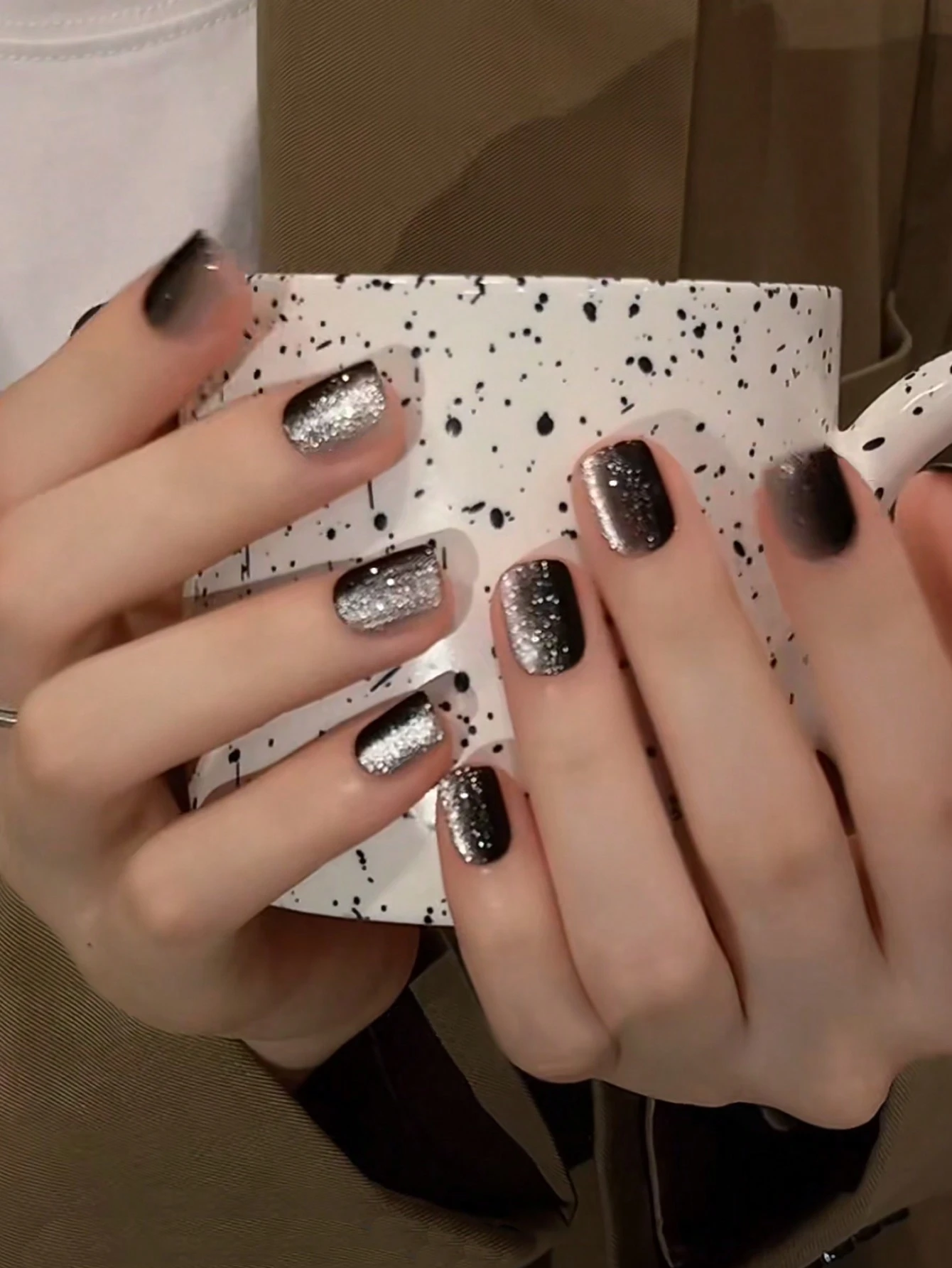 Goth Kurze Quadratische Gradienten Glitzer Full-cover Künstliche Nägel Für Töchter Und Mädchen