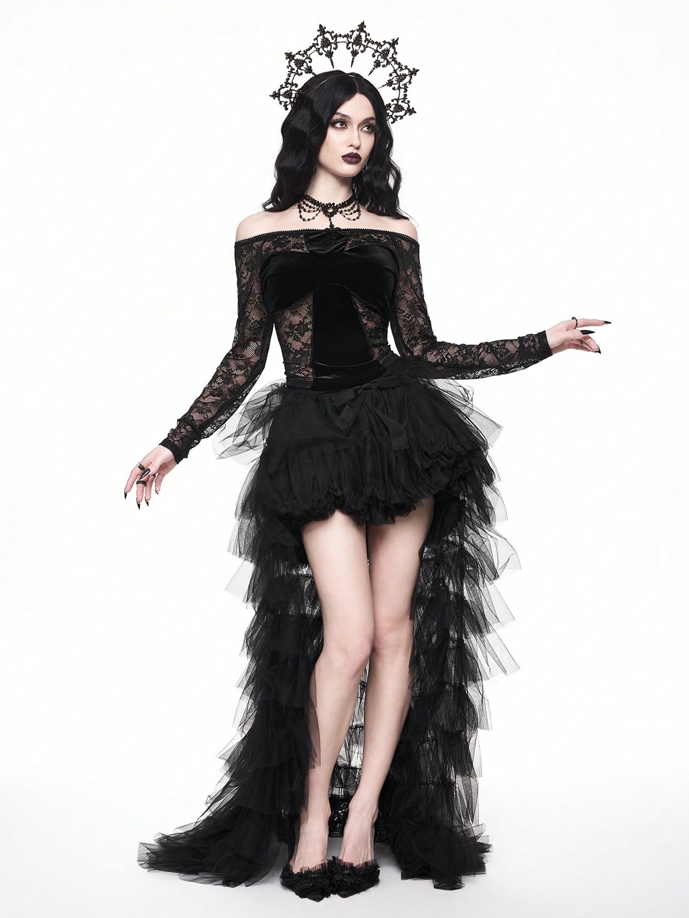 Goth Schulter freilegend sexy vintage Spitze Schleife Splice kreuz geformte Bluse für Frauen