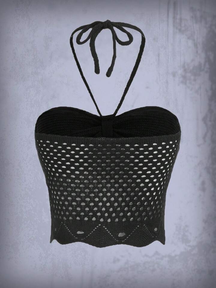 Goth Strick Top mit Einfarbig Loch, Neckholder,