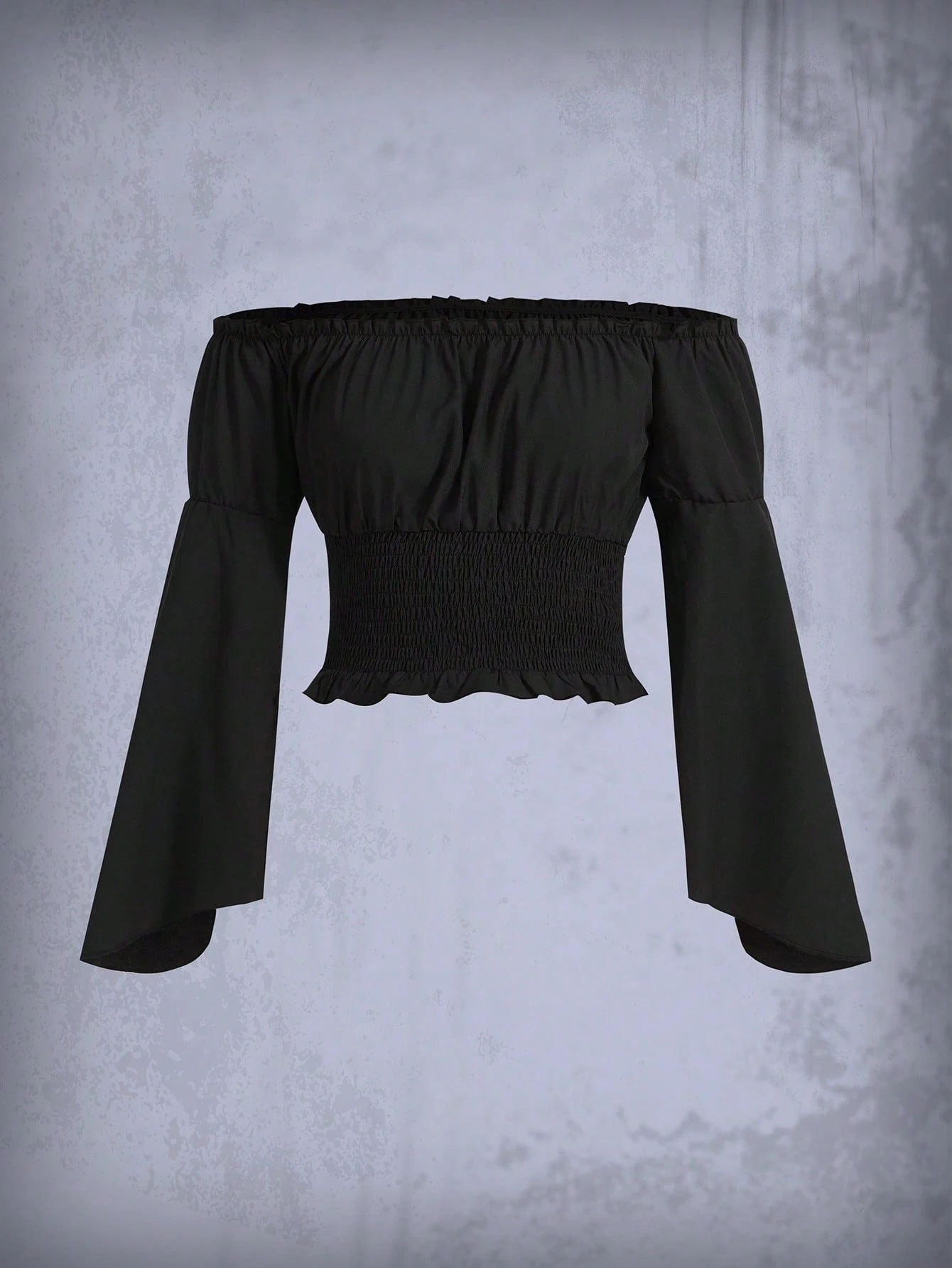 Goth Einfarbige schulterfreie Bluse mit Glockenärmeln