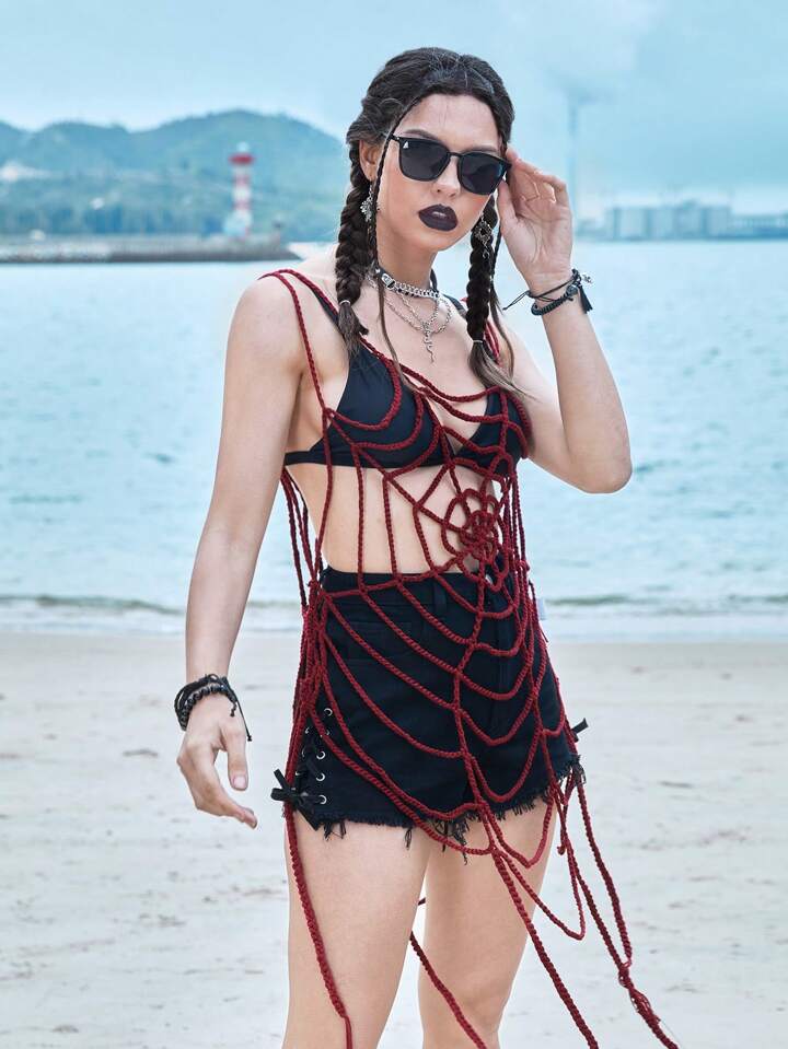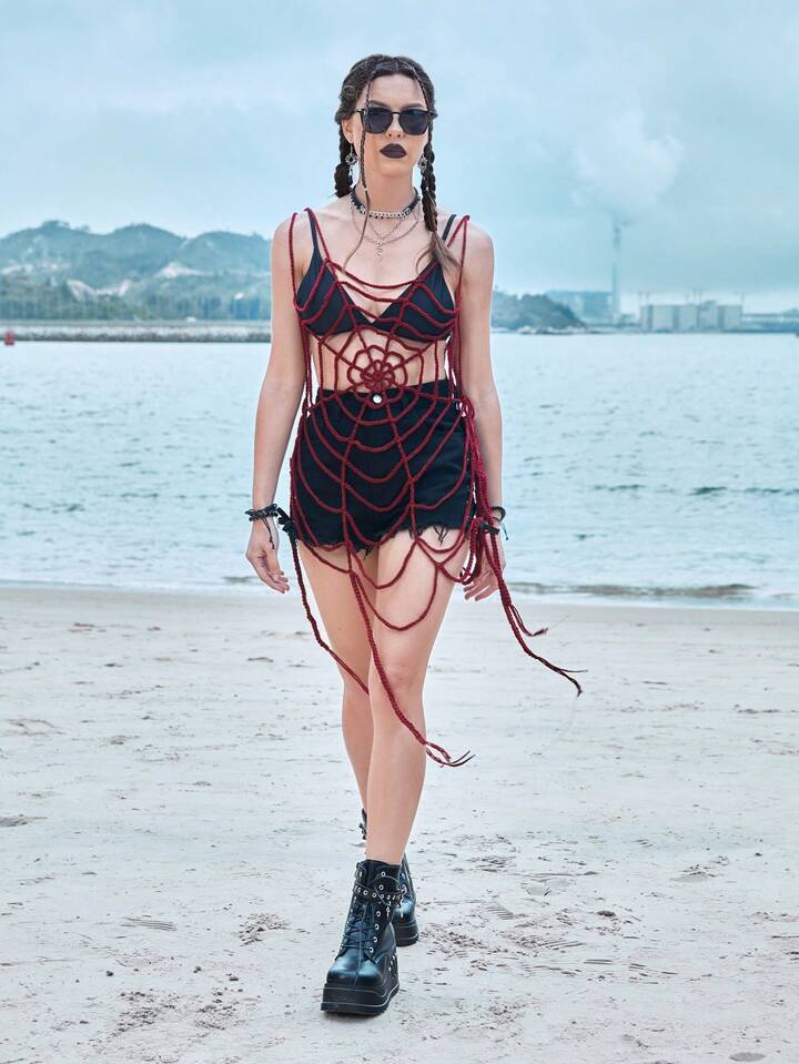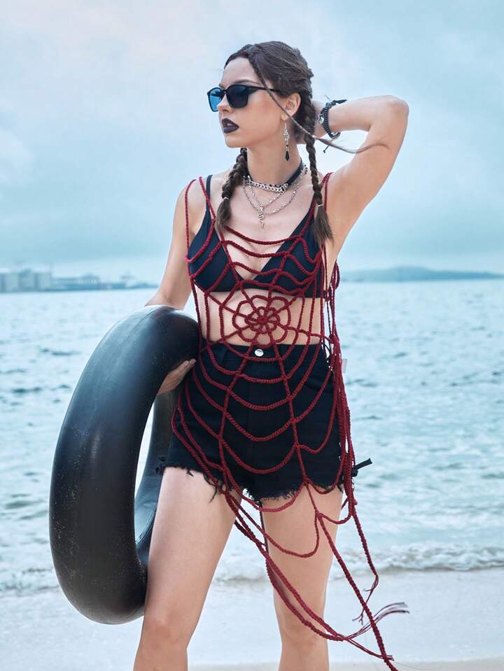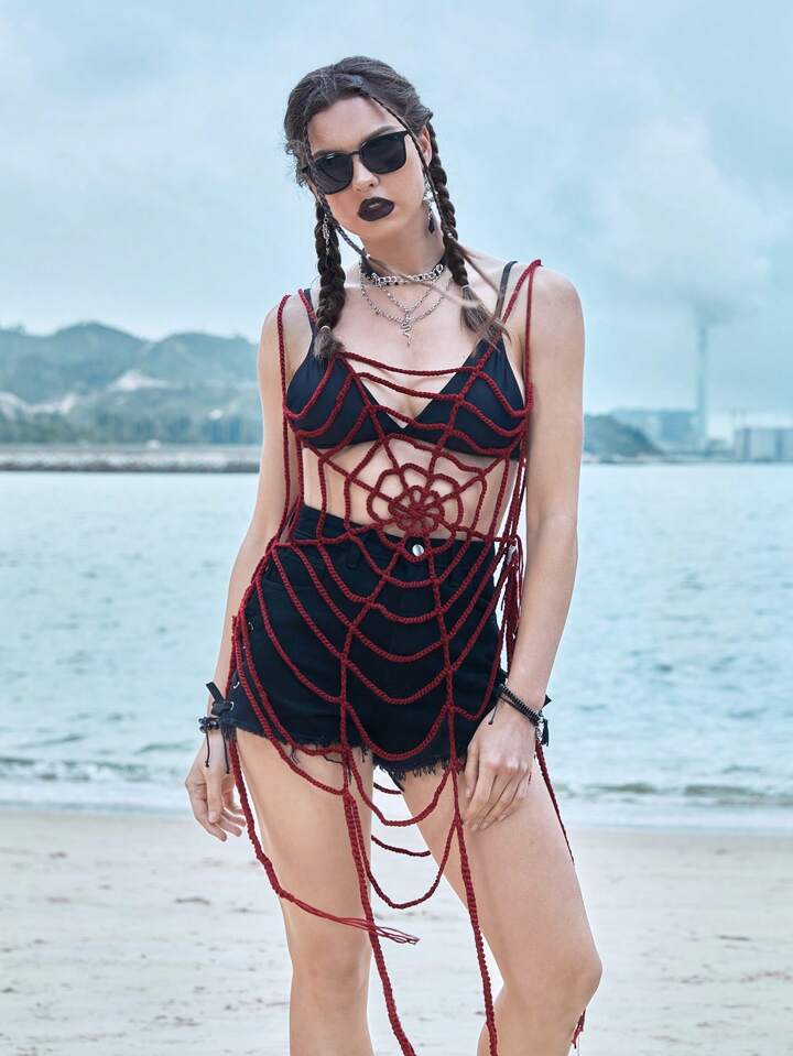 Goth Cami Strick Top mit Spinnennetz ohne BH