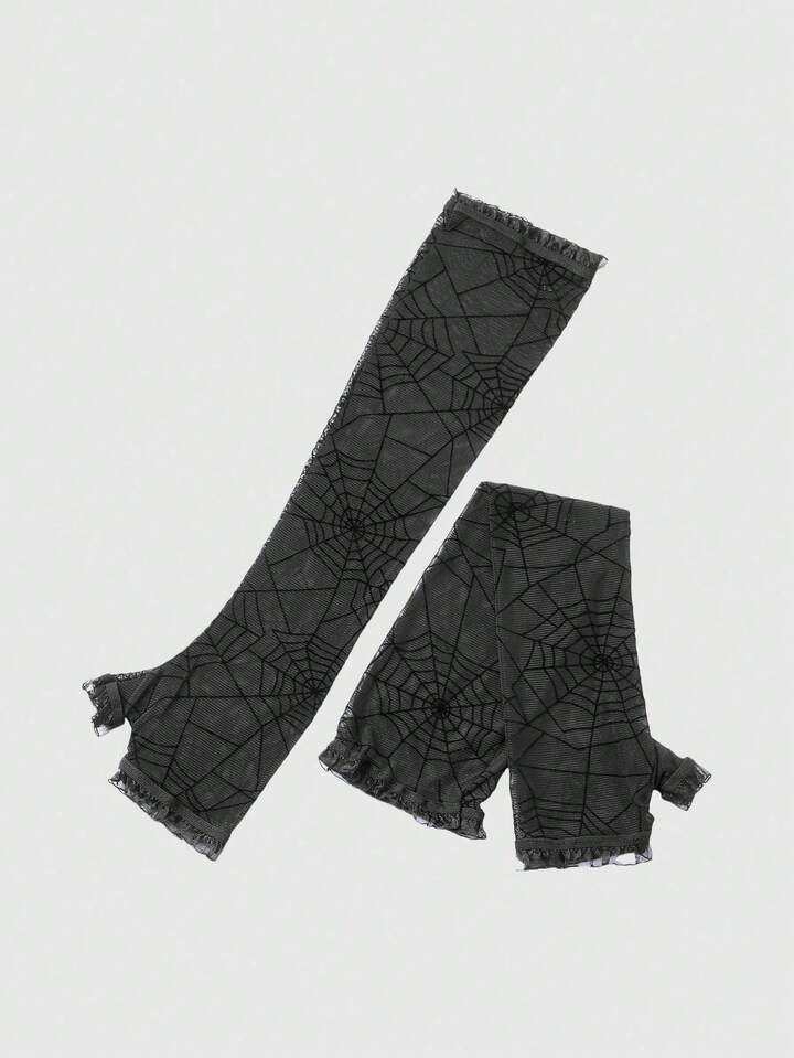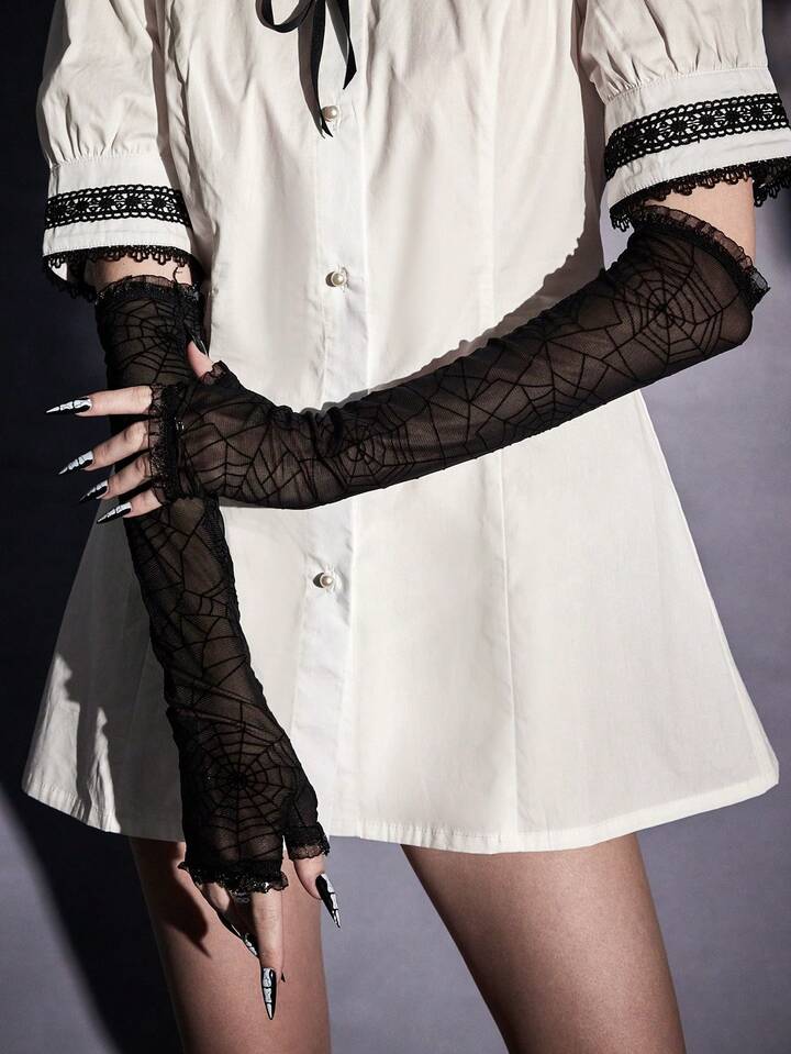 Goth Fingerlose Handschuhe mit Spinnennetz-Muster
