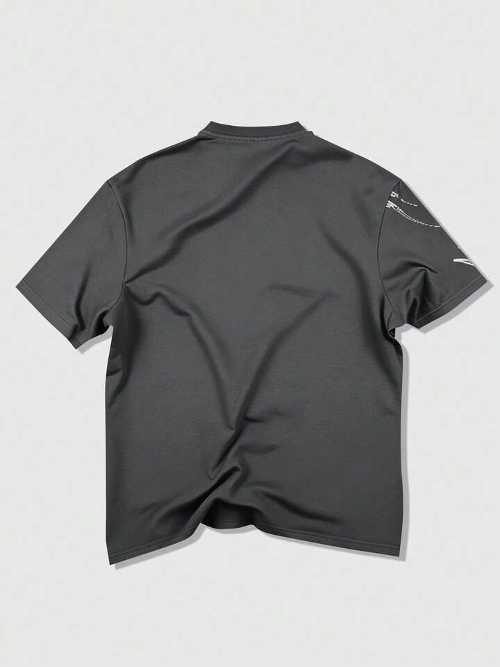 Goth Herren Lässiges, modisches Street Dark Skelett Slogan Muster Kurzarm T-Shirt, Sommer