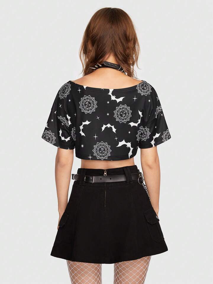 Goth Crop T-Shirt mit Sonne & Mond Muster,